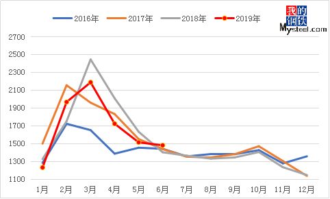 對比庫存和周消費量來看,整體處于微妙平衡的狀態(tài),6-7月的市場整體還是處于略有支撐狀態(tài)。而且隨著進入下半年的沖刺階段,整體鋼材需求有可能高于上半年。所以整體的庫存可能在近期回升之后再度下降至年底。
